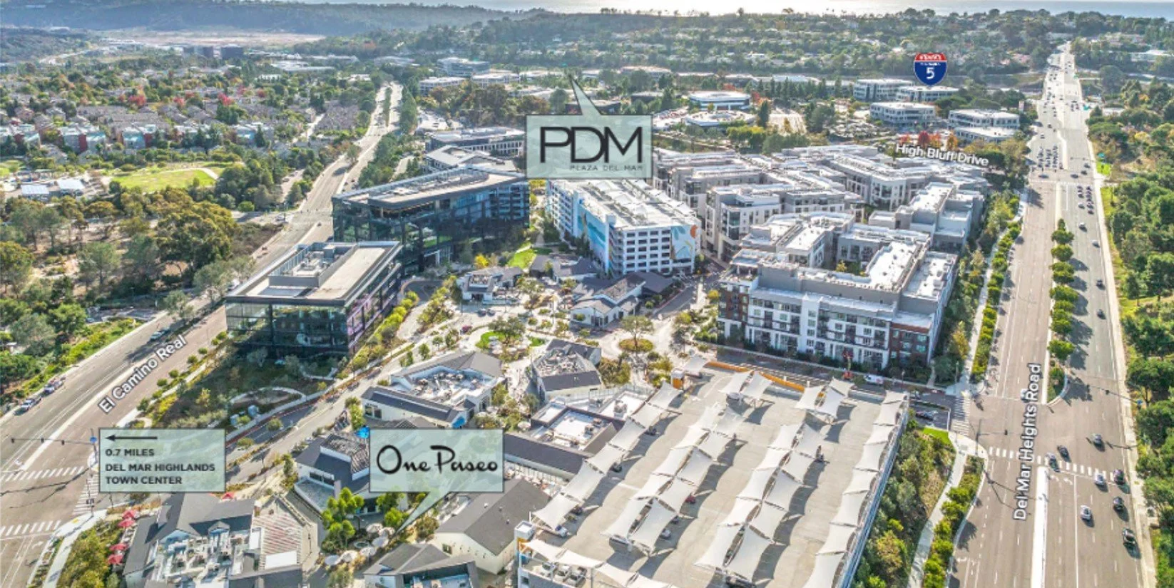Plaza Del Mar (“PDM”) is a high-quality office campus located in Del Mar Heights, one of San Diego’s most desirable coastal submarkets. Positioned down the street from One Paseo and Del Mar Highlands, the property benefits from immediate access to a highly curated mix of retail, dining, and lifestyle amenities. The campus features low-rise buildings, abundant parking, and flexible floorplates that are well-suited for modern tenants seeking a more residential-style work environment.